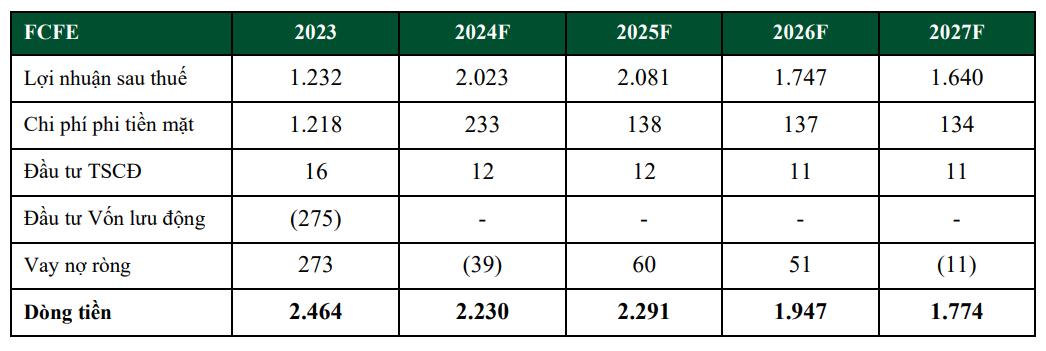 Cho năm 2024F, giả định giá urê cho năm 2024 ở mức 440 USD/tấn, giá dầu Brent 86 USD/thùng, và dự phóng doanh thu năm 2024 là 12.543 tỷ đồng (+2% yoy), LNST đạt 2.027 tỷ đồng (+64% yoy).