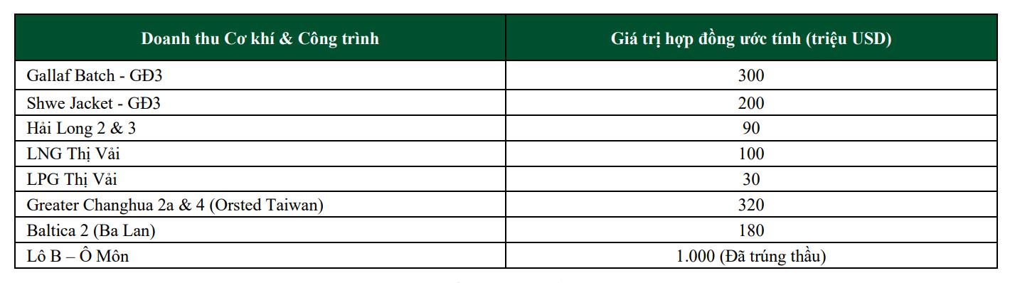Changhua (dự án điện gió ký với Orsted Taiwan), LNG Thị Vải. Biên gộp mảng này nhiều năm qua đạt mức thấp 1,6%-2% do giá nguyên vật liệu tăng và cạnh tranh trong giá đấu thầu các dự án.