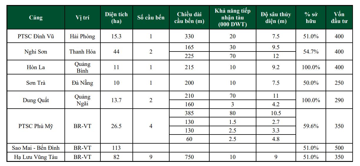 PVS hiện tại đang vận hành 8 cảng biển. Hệ thống cảng của PVS đem lại doanh thu ổn định hàng năm vào khoảng 1.300-1.700 tỷ đồng, đóng góp trên 10% tỷ trọng doanh thu. Các cảng khu vực BR-VT sẽ là nơi thực hiện gia công chế tạo chi tiết cho các dự án điện gió ngoài khơi – hệ thống cảng kết hợp nhà xưởng với diện tích lên đến hơn 200ha, cầu cảng dài 1.000m lớn nhất trong khu vực. PVS vừa đầu tư 6 nhà xưởng mới dùng trong thi công chân đế điện gió với công nghệ hiện đại hơn so với các đối thủ trong khu vực. VCBS kỳ vọng các hợp đồng điện gió ký mới sẽ thúc đẩy tăng trưởng mảng dịch vụ cảng biển của PVS kể từ năm 2023.