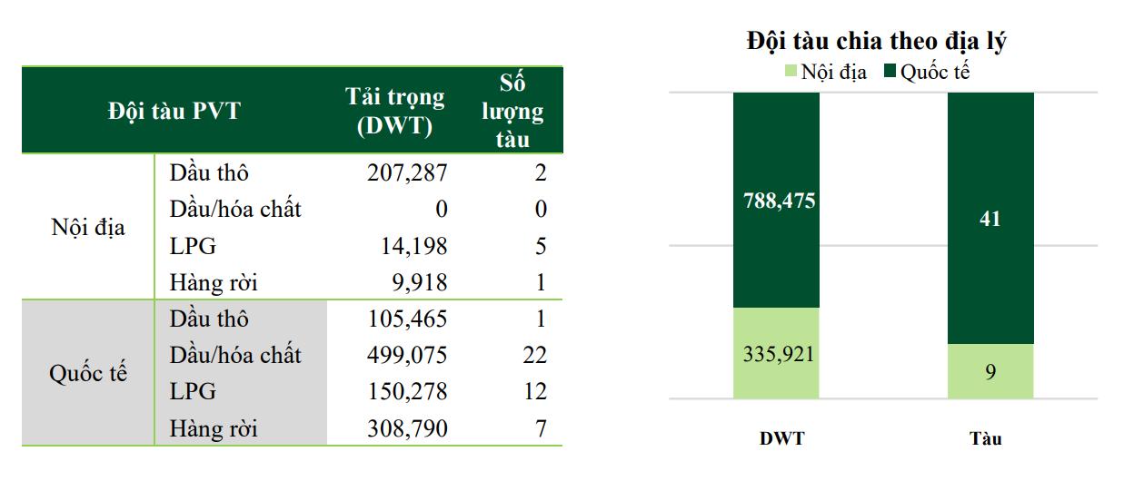 Hiện tại đội tàu PVT có 51 tàu, trong đó có 9 tàu mua theo hình thức thuê tàu trần (BBHP-bareboat hire purchase). Trong 9T.2023 PVT đã mua 5 tàu và thuê 5 tàu theo BBHP và thanh lý 2 tàu gồm Apollo (Q2)